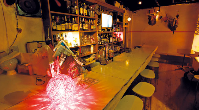 See, it’s not really about the drinks at this place. With plain old Suntory beer on tap (¥650) and just a smattering of interesting spirits (Zubrowka Bison Grass vodka, Four Roses bourbon, a few tequilas), you won’t find anything that isn’t available elsewhere. The mixers are rarely top-notch, either. The Moscow mule, for example, is made with horribly sweet ginger ale and lime cordial—not exactly a high-class cocktail.