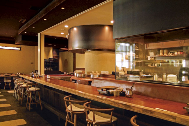 Fukunokami is a short walk from Hinode station on the futuristic Yurikamome line. (Don’t look for a driver on the train—there isn’t one.) We had heard that the restaurant was small and homey, so when our map directed us to large and very modern office building, we were sure we’d gotten lost. But after asking for directions, we realized that this rustic Kyushu-style eatery sits in one corner of the building.