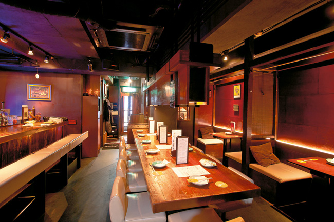 Always a good sign for quality restaurants in Japan, it’s packed with young, upwardly mobile, trendy young women. This ain’t your aging salaryman izakaya (despite being filled with smoke). The soft-lit dark wooden counter and seating area is scarred from scrapes with Louis Vuitton handbags and flashy baubles. A sunken private table near the entrance is available for groups, but you don’t want that. This is one of those places where it’s better to sit in the thick of it all.
