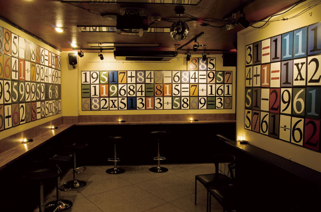 Gamuso fits into this scene surprisingly well. I say “surprisingly” because, at first blush, it seems pretty ordinary—not unlike the foreign-run places you could find in just about any neighborhood of Tokyo. The main bar on the second floor is intimate and dimly lit, with a large window at one end that stops things getting too claustrophobic. Upstairs is a marginally larger exhibition and performance space, complete with stage, DJ booth and a respectably beefy sound system. The exhibitions change frequently; when we go, the walls are decorated with enormous colored numbers, the profundity of which is somewhat lost on us. They look pretty cool, though.