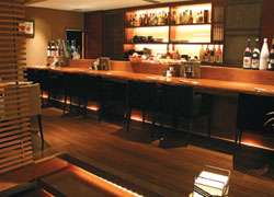 As we entered the basement-level restaurant, we were not at all expecting its quiet, refined interior. A smartly dressed maître d’ led us along a stone walkway, the corridor tastefully lined with cerulean and dark brown sake bottles. Ginza Hachi no Go features three seating areas: a counter bar facing the door; a trio of rooms with comfy-looking chairs, wooden tables and karaoke machines; and two semi-private, Japanese-style horigotatsu rooms, with backlit paintings on white washi paper hanging on the beautiful earthen walls. The restaurant was nearly empty on this particular Thursday, so we chose one of the Japanese-style rooms, removed our shoes, and opened the drink menu.