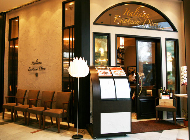 Enoteca D’oro is located in the food court of an office complex, so when we showed up on a recent cold and rainy Sunday, we expected to have the place to ourselves. Wrong. The rustic-flavored interior was abuzz with couples, families and other small groups, and we’re guessing that when the business crowd flocks in on weekdays, seats are tough to come by. For a new entrant in Tokyo’s cutthroat restaurant scene, that’s a good sign.