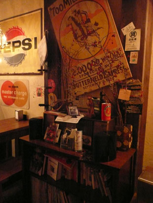 Sakaguchi also turns out some 20 side dishes, each carefully prepared and presented. Under my belt so far are a small order of crisp, finger-lickin’ onion rings (¥400); a very fine cup of chili beans, savory with roasted onion and spicy notes of cumin (¥500); and a nicely crafted green salad with Caesar dressing (¥700). In the evening, Rainbow Kitchen slips into bar mode with an expanded menu, single malt whisky, beer, shochu, and a full range of cocktails.