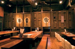 Like its distant cousins of the same name in Shibuya and Shimokitazawa, Shirube has mastered rustic-chic izakaya design. The cozy, all-wood interior has three areas—a dining bar, long share tables and some private rooms—most with casual legs-in-the-floor seating. The restaurant is a hive of activity, with staff scampering between the tables animatedly attending to the cheerful customers, on our visit mostly office workers enjoying an early start to the weekend.