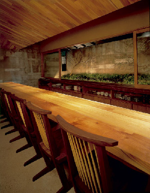 At night, Tamasaka’s service and culinary treats are slightly more polished for a sophisticated evening out (¥8,400 for ten courses). The first floor is opened out with its generous counter seating; the perfect vantage point to observe the simple illuminated garden and the skillful preparation of your meal.