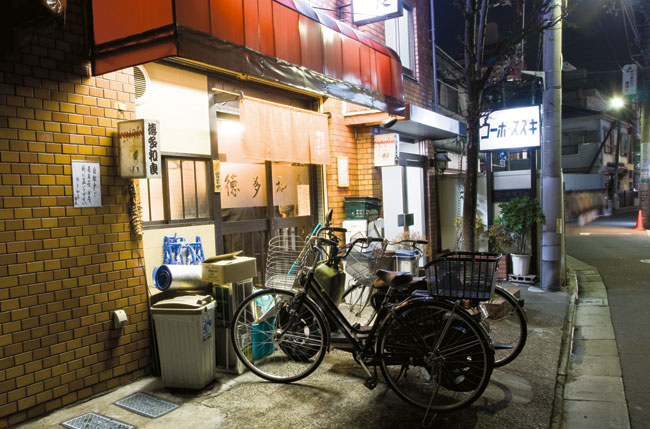 Unusually for a traditional-style standing bar, Tokudawara is entirely nonsmoking, and the music is all oldies and rock’n’roll—at one point in the evening, we’re jolted back to earth by the original version of “Itsy Bitsy Teenie Weenie Yellow Polka Dot Bikini.” Well, it beats The Black Eyed Peas.
