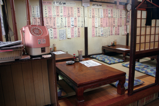 Pausing to look around, we noticed that the customers were very much a local bunch, and probably regulars too, with two ojisan smoking heavily to our left and a young family to our right.