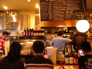 Settled at one of the bar’s three wooden tables, our group of four surveyed what was on tap for the evening and opted for pints of Shiga Kogen’s IPA and Indian Summer Saison. A selection of American imports such as Anchor Steam, Lost Coast, and Brooklyn Brewery are also on hand. The Saison, with notes of citrus and hops, fairly crackled on the taste buds, quickly becoming the table favorite.