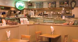 When our cheeseburger with the works (including crunchy dill pickles) and hot pastrami sandwich arrived, our eyes widened, but they looked so delicious we sighed as we prepared to tuck in. The waitress pointed to a napkin holder with sheets of parchment closed on two sides to form a pocket, the kind in old-fashioned burger joints back home. And the parchment proved necessary; as we bit into the hearty sandwich with thick, Canadian-style bacon, cheddar cheese, all the trimmings and a graham bun, juice, ketchup and mayonnaise came streaming out.
