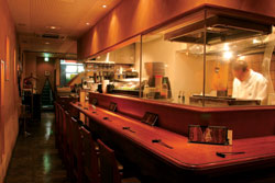 “Taka” and his lovely wife Naoko, along with their staff of three, call this place a “Sashimi & Grill.” For us, nothing could be more basic to prepare than sashimi—all you have to do is slice up the fish, right? But here, it comes with a sudachi twist, like a small dab of grated daikon and wasabi on top of the choice cuts of salmon (¥1,200). Even the noble Caesar salad is given a fusion touch, sprinkled with tiny jyako fish (¥900).