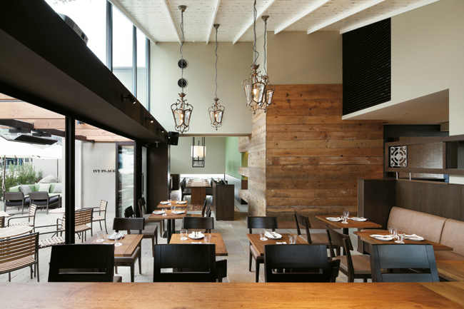 Ivy Place’s aspiration is to be a bit of everything—from breakfast spot to late-night dining locale. The building itself, part of the new T-Site complex [for more on T-Site Daikanyama, see p.8—Eds], is split into café, bar and dining sections, with a terrace on each. It somehow combines modern and classic, with its sloping roofs, glass doors, stucco walls and wood accents, and fits T-Site’s vibe of understated luxury.