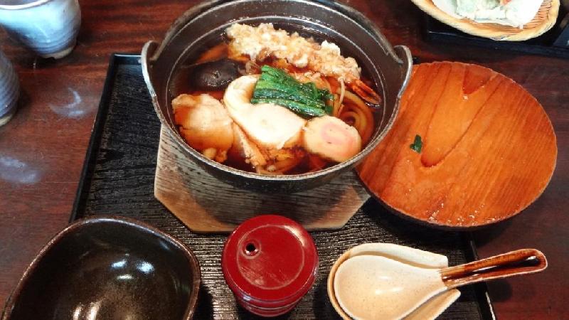 My recommendation is the cold soba with tempura. It is a large serving (much more than standard) and the tempura is nice and crispy. The nabeyaki udon is another tasty noodle dish. It is udon noodles with a variety of toppings, such as boiled egg, shrimp tempura, mushrooms, seasonal green vegetables, and fish paste. They serve it extra hot in a casserole dish. It will warm you up nicely in the cold winter.