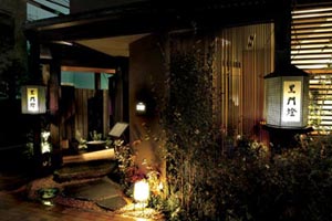 Regardless of the fully occupied floor, our servers were melodically and unobtrusively orchestrating our meal, gauging correctly the pauses between each dish. The latter half of our dinner began with fugu no karaage (deep-fried fugu) and because the blowfish contains almost no fat, we eagerly welcomed this pleasantly adipose interpretation. Meaty pieces of fugu and vegetables were simmered in a shining copper pot for the grand finale of fugu chiri nabe (hot pot of fugu), the gentle broth soothing our evening to a close. With seasonal delicacies shirako (fugu milt, ¥1,000-¥2,200) and Beaujolais (¥800/glass) available in December, even the few remaining weeks of 2003 may find us back at the festive Kuromonto.