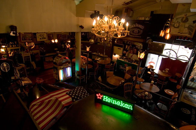 Garage can accommodate up to 120 people and has a fun, retro vibe even when you don’t stumble in on a party night. A central stage is used for nightly performances, usually jazz, which go down well with the youngish, suited Japanese clientele. Our perch upstairs gave us a secluded vantage point over the live music, but the grungy carpet and shaggy chairs make the bar around the performance area the ideal place to sit.