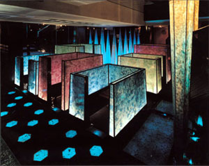 We were surprised to find Maisui, Yusaku Kaneshiro's design triumph, lying mere steps from Shinbashi station, in an alley of izakaya and cheap noodle joints and boasting a young female pamphleteer outside-this is obviously a salaryman haunt, we thought. Not that Tokyo's male office workers don't deserve a stylish watering hole where they can bitch about work, but these folks are usually in the market for little more than a few tidbits and some sake to wash them down with. Yet, as we approached Maisui's exterior, all signs pointed to this being just another stopover for the besuited and soon-to-be-besotted white collar crowd.