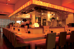 All of Podo’s food is served up in a smart interior that has cleverly arranged seating areas to mask the relative lack of space. If you’d like a front-row view of the action, belly up to the counter and watch the cooks maneuver around the stoves and charcoal grills. Several four-person booths would be the best choice for couples, and the friendly staff will give you personalized service.