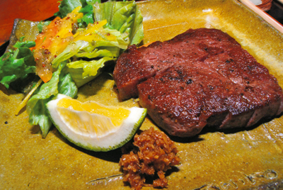 Then came the masterpiece: 120 grams of seared wagyu beef, buttery in consistency with the perfect rare center. A daidai wedge was provided which I squeezed liberally over the meat, to eat piece by juicy piece. À la carte, the dish costs ¥6,000, and I have to say it’s worth every yen.