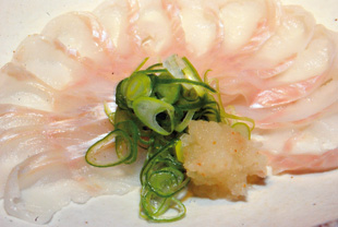 Our first experience of this Eden-like fruit was in the homemade ponzu sauce into which we dipped the delicacy-of-the-day—anago sashimi. This was the first time I’d eaten freshwater eel raw, and my nervousness was eliminated by its tender white meatiness, laced with a succulent line of fat.