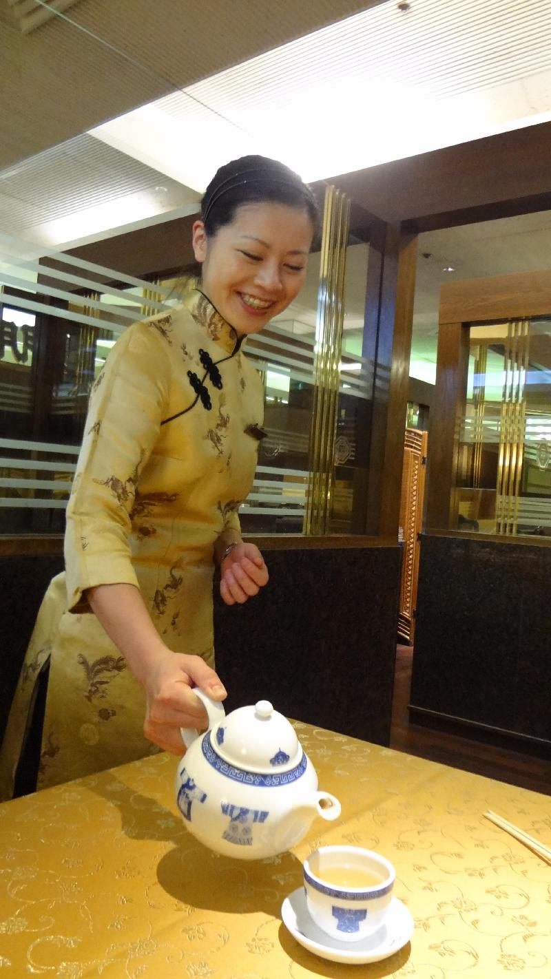 All tables are in booths that are separated and surrounded by glass partitions. This creates a cozy, comfortable atmosphere. The lighting is a bit low and adds to the relaxing, casual ambience. The staff here is very well trained and friendly. The female servers are dressed in Chinese traditional gowns and add a touch of elegance to the surroundings. Soft jazz music plays comfortably in the background.