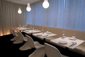 Water Grill's menu is heavy on appetizers, with over a dozen hot and cold ones matched against only three entrees. From the starters list we chose the cold crab cake (¥1,300). This arrived as a mound of crabmeat mixed with ricotta cheese, on top of which sat avocado slices, a poached egg and a pair of bagel chips. The cheese was a nice touch, adding an unexpected flavor in place of the bland mayonnaise we're used to in similar dishes, and the stringy crabmeat, like everything at Water Grill, was obviously fresh. Our lone entrée of the evening, the house gumbo (half ¥1,400, regular ¥2,800), was prepared before our eyes in a cool-looking steam kettle. A mélange of shrimp, crab, clam and okra, the dish, unfortunately, had us pining for the real New Orleans thing; the tomato sauce was overpowering and, though admirably spicy, more Italian than Cajun.