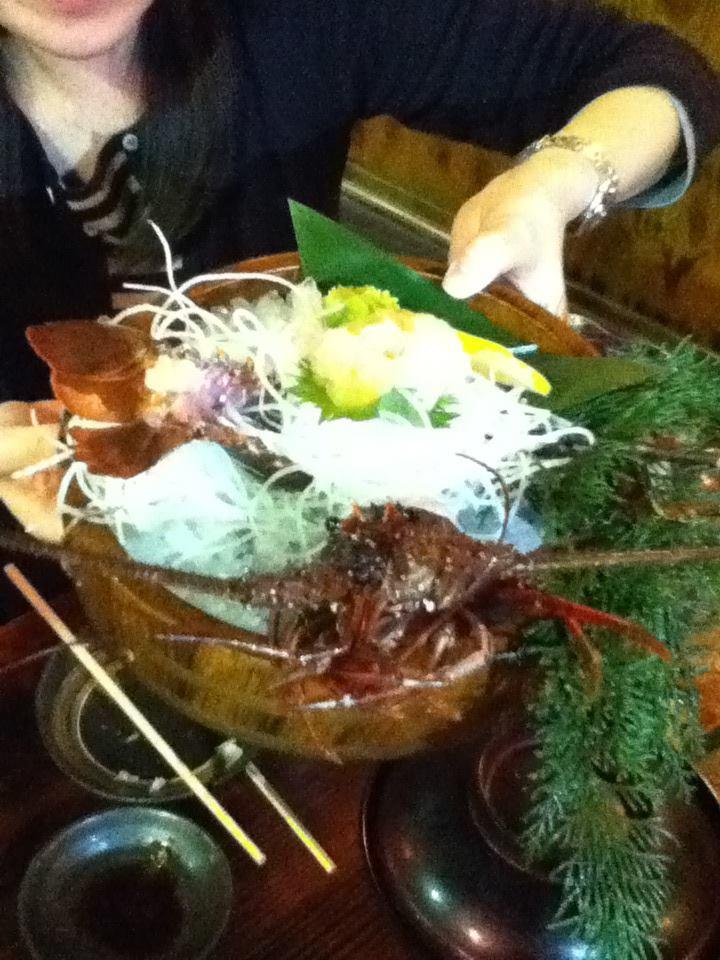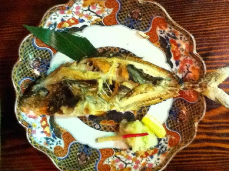 Our group was led to the dining tables onboard the boat. I got the chance to sit on the starboard side (right side of the boat in land-lubbers' lingo) near the water where I could observe the fish swimming around. The staff brought us our fishing gear and an amazing appetizer. After feasting on the appetizer, it was time to get to it! I got my pole and waited for my fish. Some people in my group got their fish as soon their bait hit the water. Others like me who didn’t use bait took a little bit longer. Once I caught my fish, it was a struggle to get it up higher so my friend could catch it with a net, since it was flipping and flopping, but we did it! Once it was in the net, the staff came around and did a little cheer while the manager played the taiko drum. After the cheer, the staff asked me how I wanted my fish prepared: as sashimi, grilled, simmered or fried. As a group, we got the chance to select one of each method of preparation.
