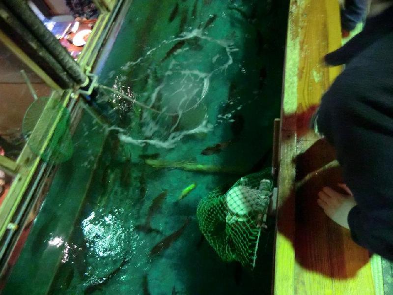 Once you enter the restaurant, you will see a boat filled with dining tables located right in the center of the restaurant. There is a pool of water surrounding the dining area which contains snapper, mackerel, shark, eel and even lobster. Don’t get disheartened if you are an inexperienced fisherman: you will fish like a pro, with or without bait!